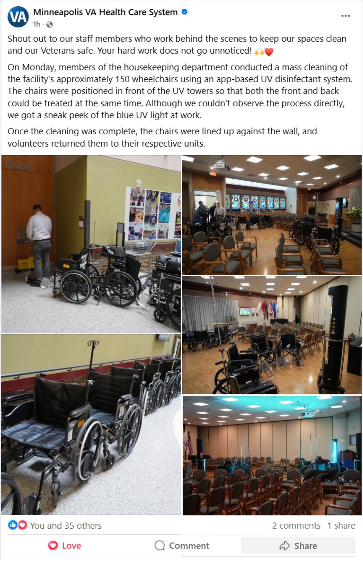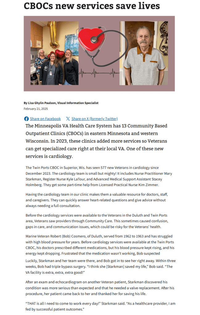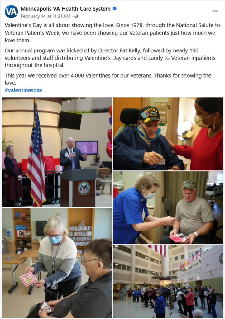 As a Visual Information Specialist with the Department of Veterans Affairs, part of my job was to highlight activities happening around the Minneapolis Hospital. That included social media posts and stories that went out on the website. It’s incredible to see the activities that happen weekly in that facility.